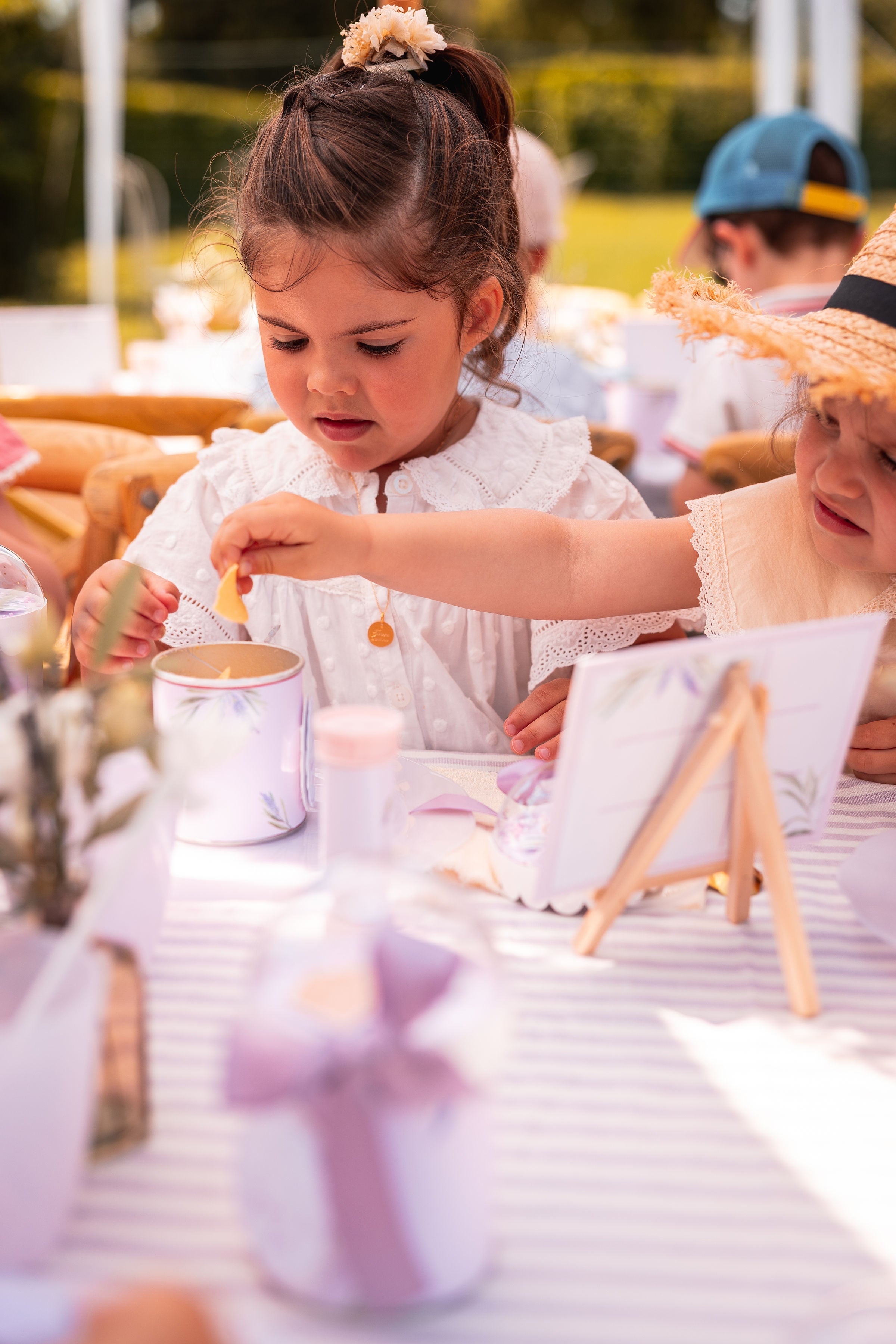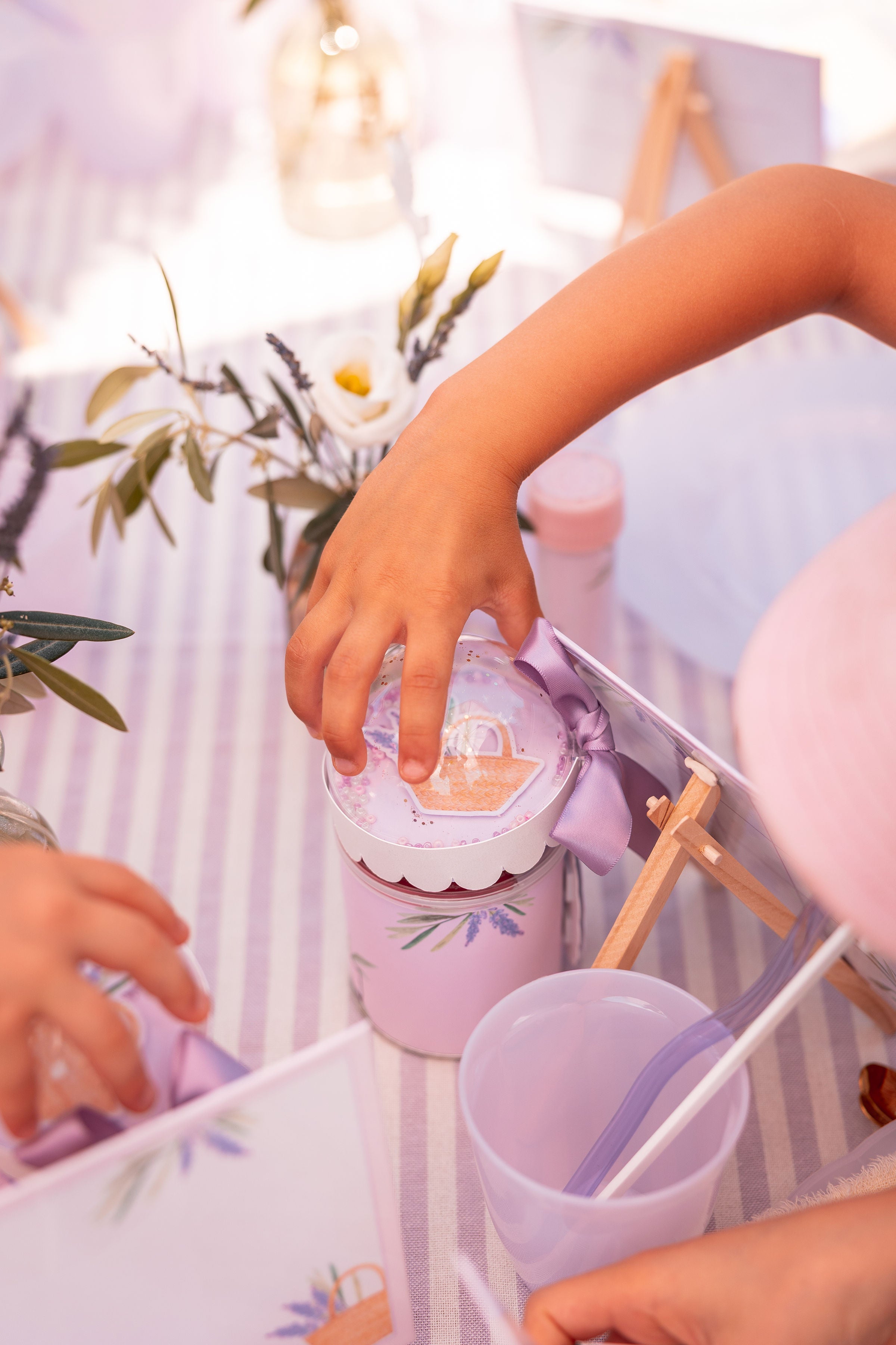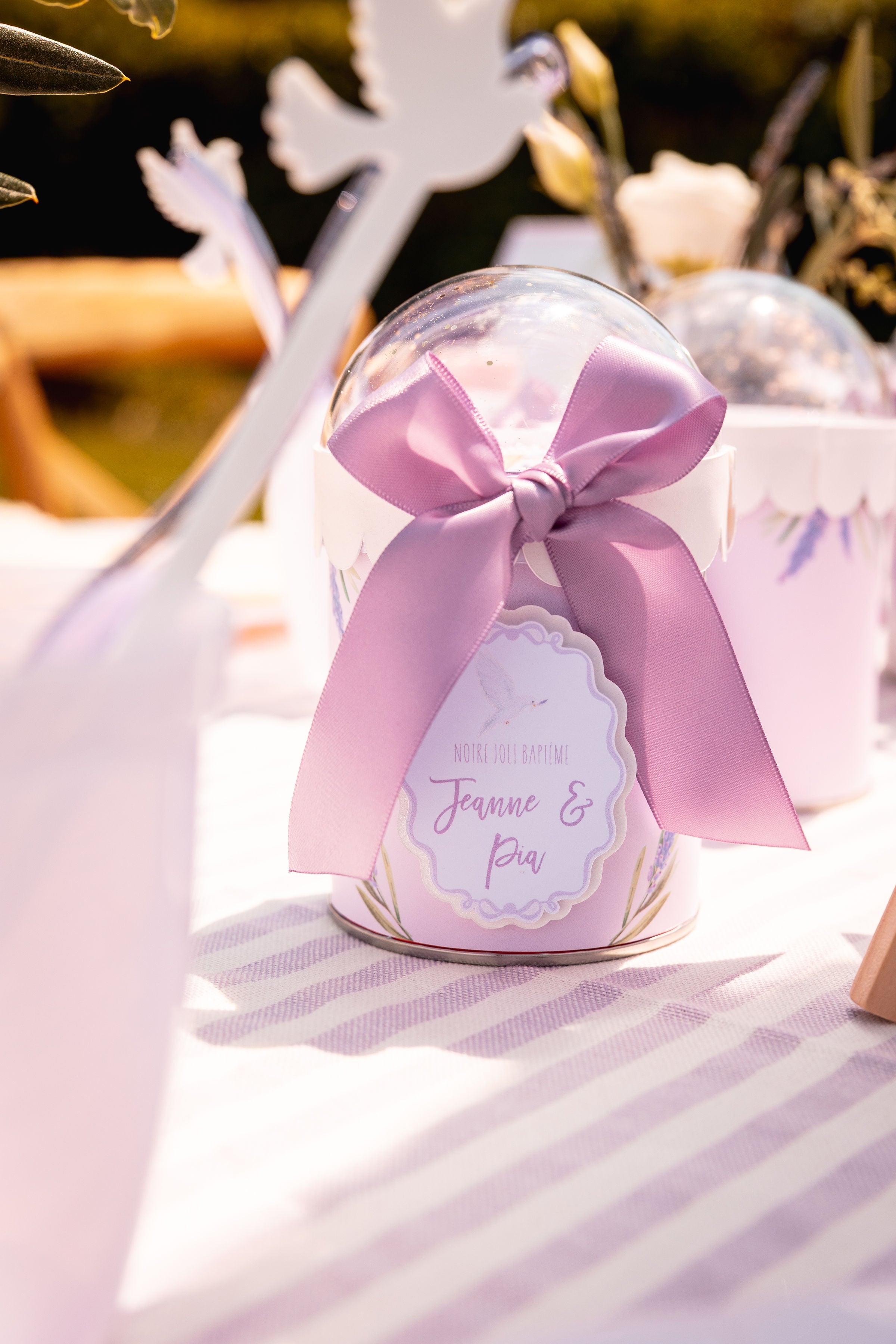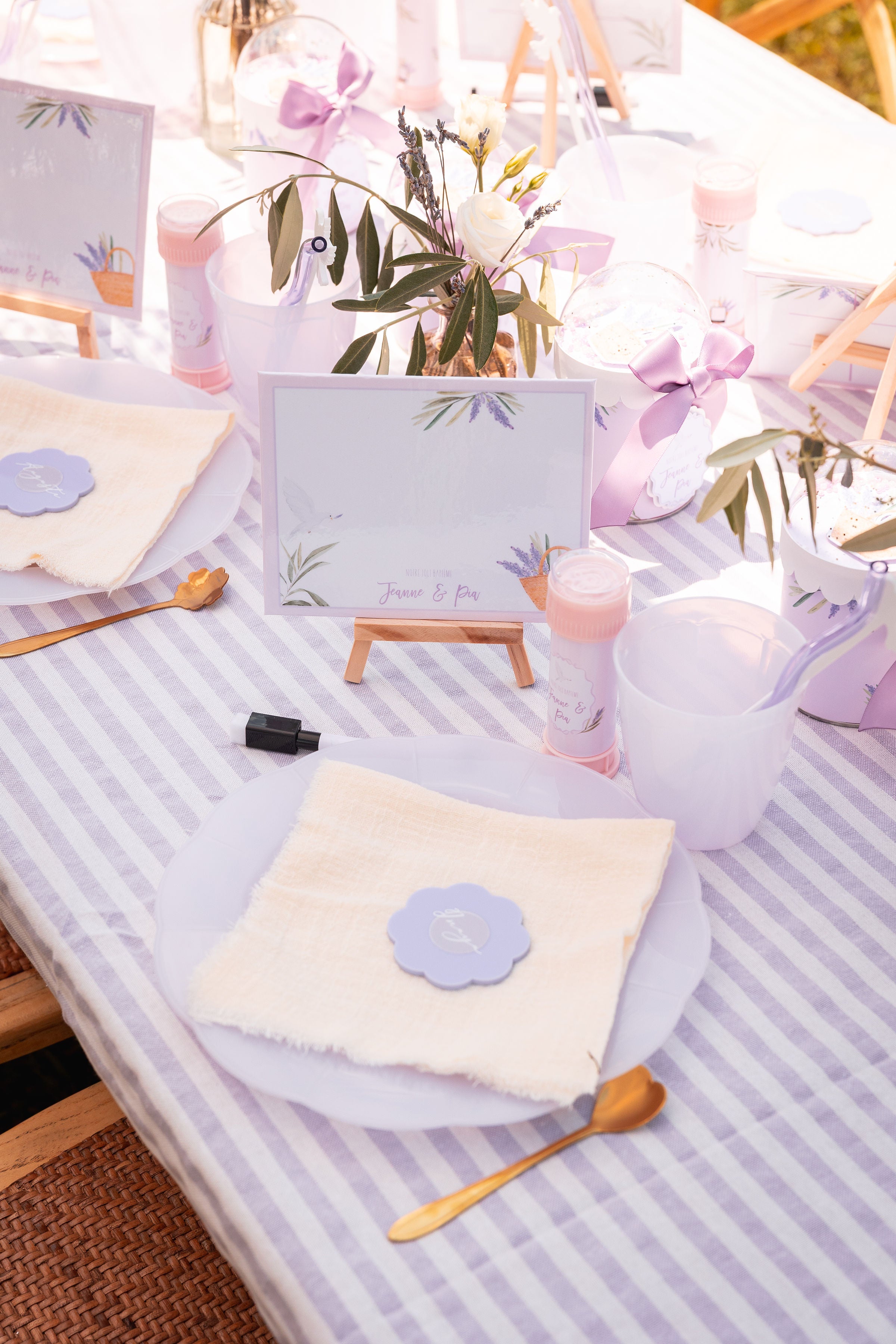 Un joli baptême sur le thème provençal, décliné dans des tons pastel de lavande et de blanc.