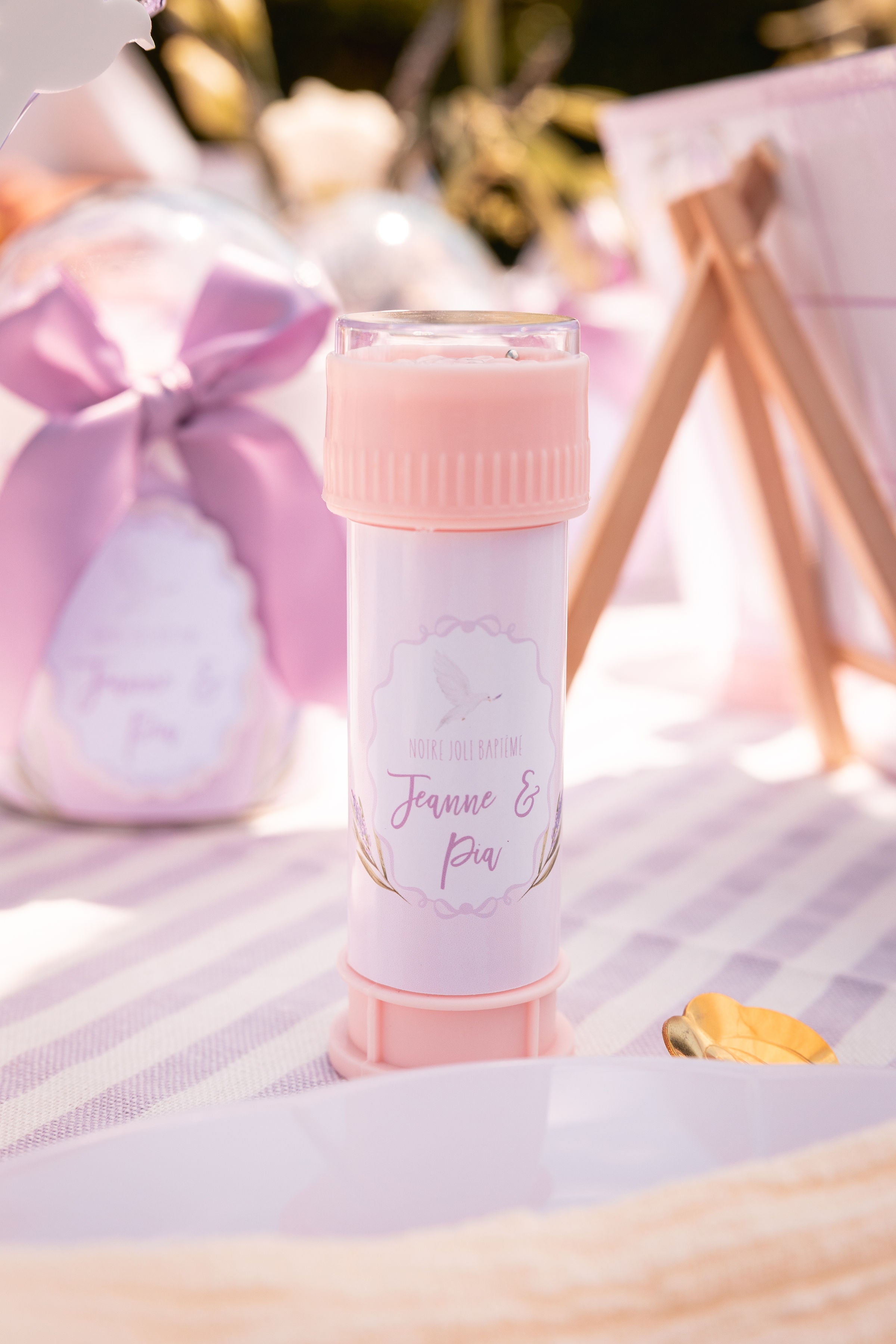 Et pour finir, de délicates étiquettes personnalisées pour les bulles de savon, petites attentions festives pour les mini invités.