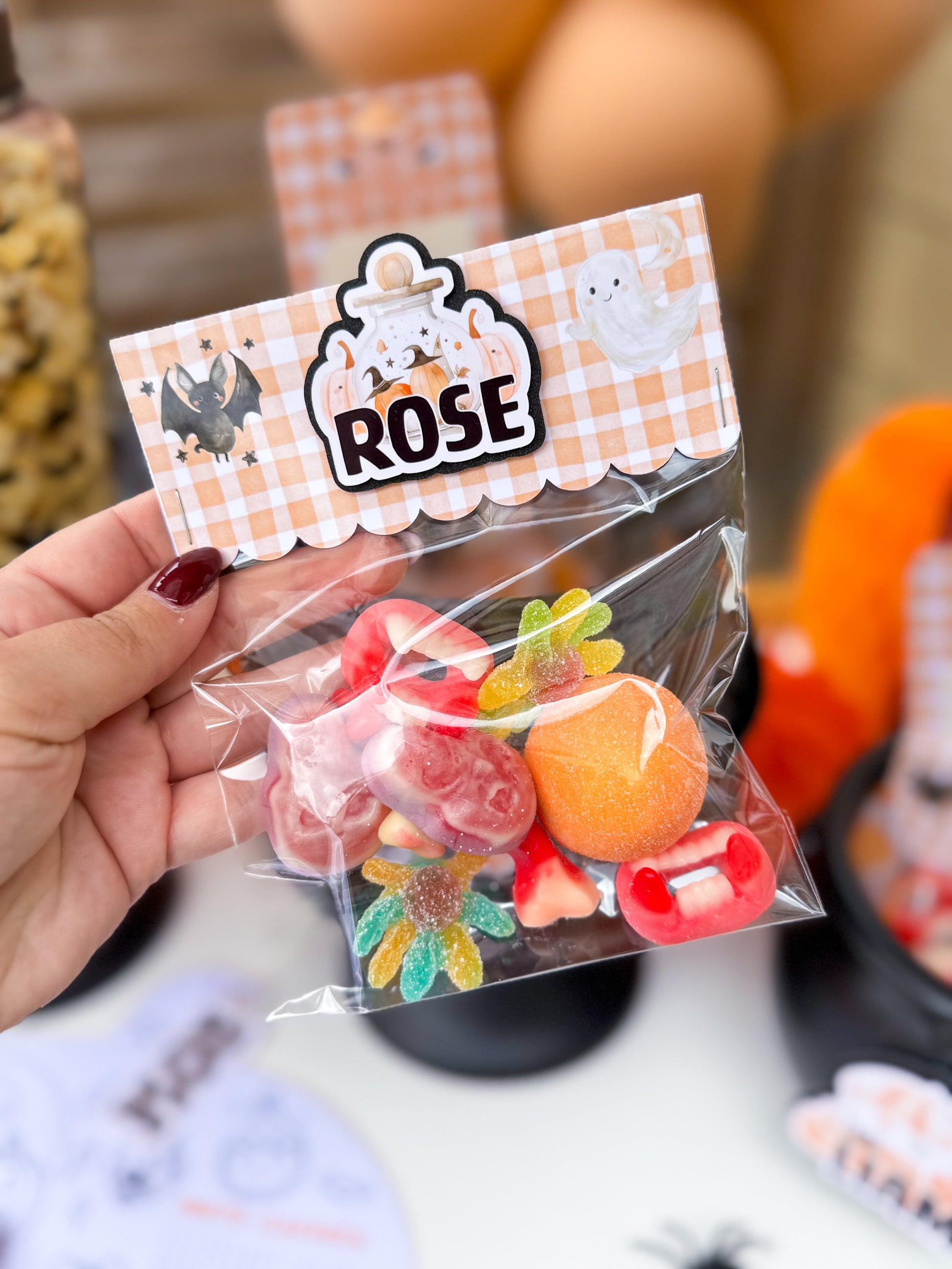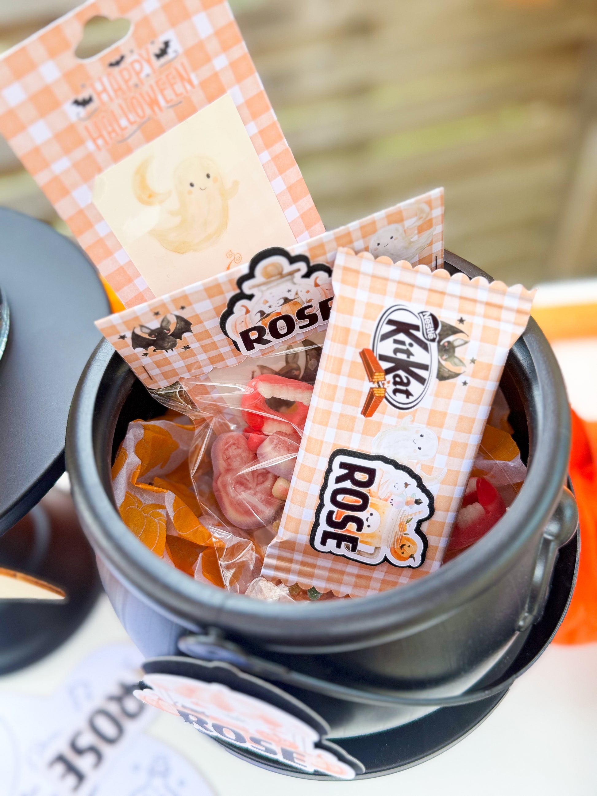 - Un sachet de bonbons personnalisé à leur prénom, rempli de bonbons spéciales Halloween.